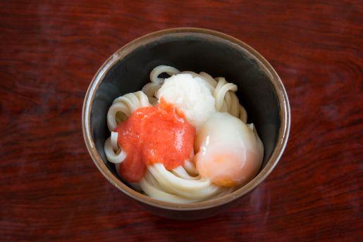 ピリ辛ソースとに温玉のまろやかさがプラスされる新感覚うどん。 温玉ぶっかけ 説明価格:440円(税込)温玉ぶっかけ